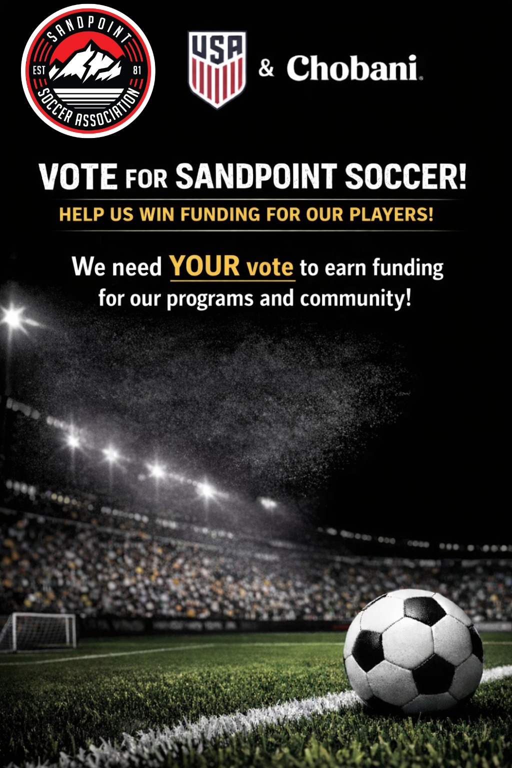 Our mission is to engage with our community through our recreational and competitive soccer programs and provide as many kids the opportunity to play, compete, and grow as athletes on and off the field. Through soccer we strive to help our players develop discipline, communication skills, team work and self-belief with the ultimate goal of empowering our players, coaches and staff to be active members and leaders within our community.