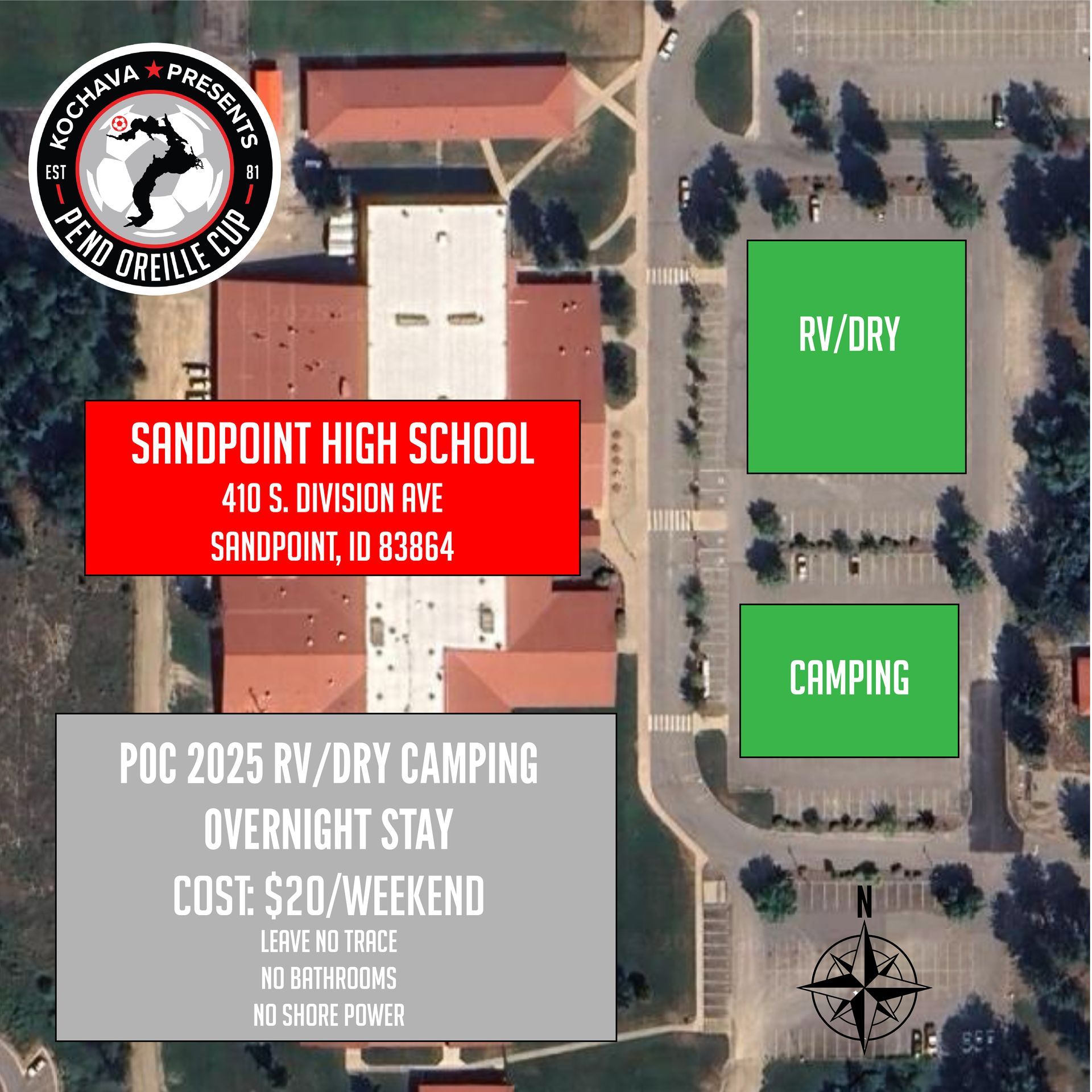 Located at Sandpoint High School w/ no utilities, bathrooms, or shore power. $20/weekend!