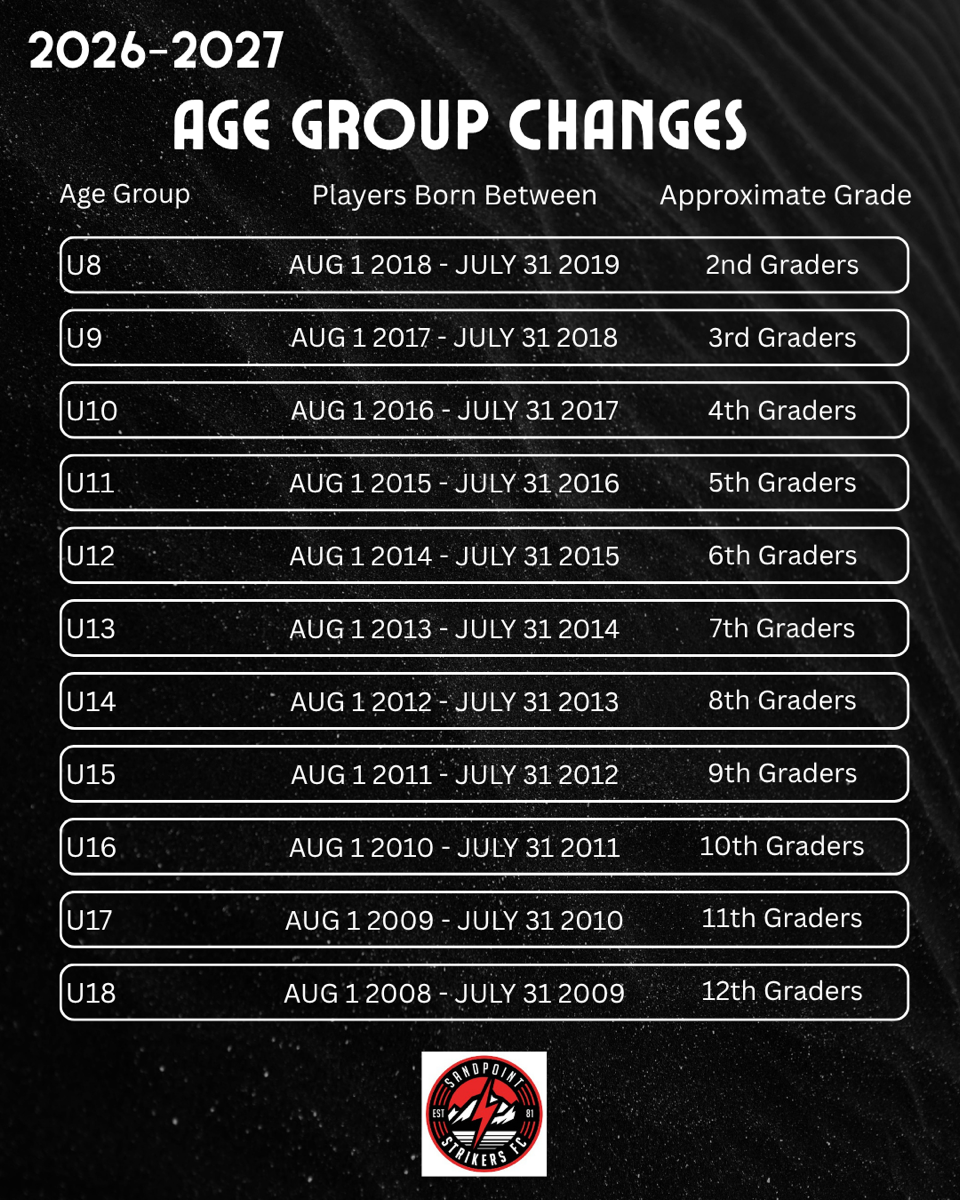 - U12 & U13: 6:00-7:00 PM